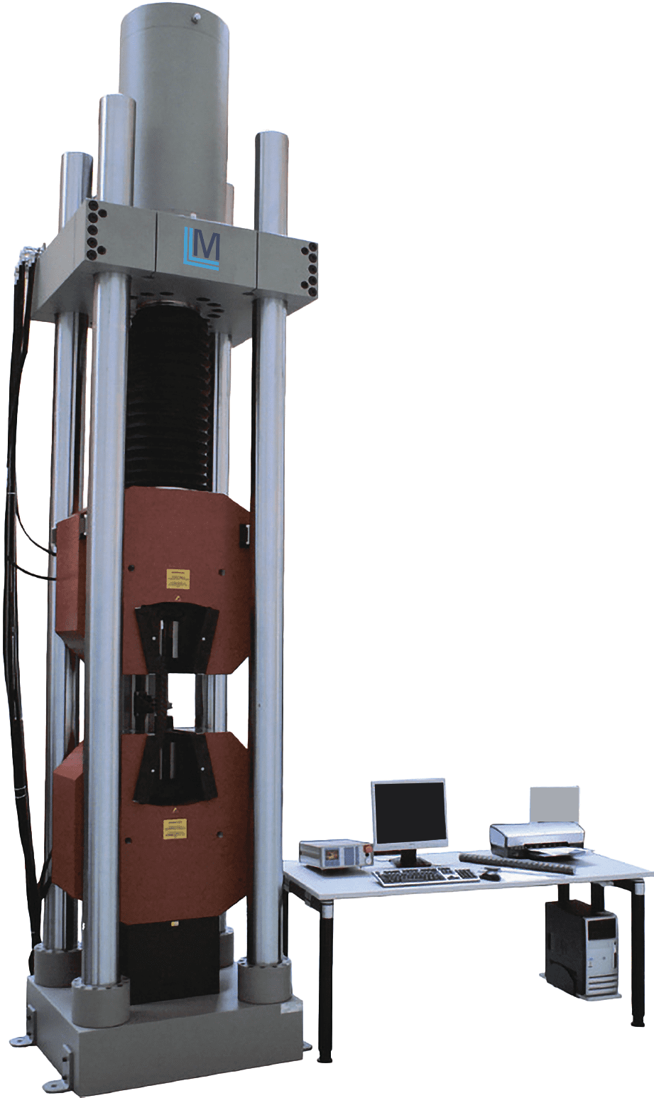 Испытательная машина МГС-Т 150 в напольном двух или четырехколонном исполнении с высокой жесткостью и точной геометрией рамы нагружения. Предназначена для статических испытаний на растяжение, сжатие и изгиб образцов из различных материалов. Оснащена актуатором двойного действия с сервоклапаном, смонтированным в верхней части траверсы и увеличенным ходом поршня для испытаний длинномерных образцов.